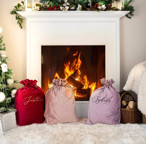 Sacco di babbo natale di vendita caldo del velluto con i sacchetti di immagazzinaggio della decorazione di natale del cordone sacco su ordinazione di Santa del velluto per sublimazione