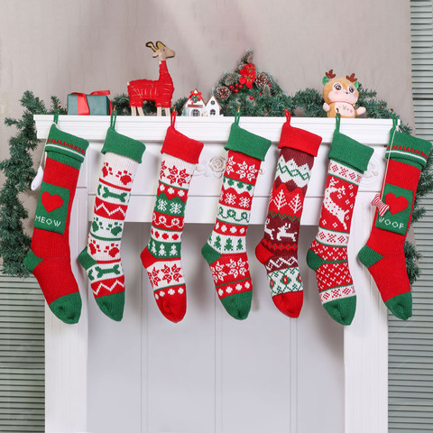 Decorazioni natalizie forniture di natale calzini appesi ornamenti a maglia sacchetti regalo decorazione calzini di natale
