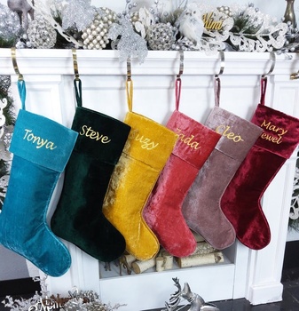 Toptan özel Monogrammed kadife yılbaşı çorap düz renk şeker çanta hediye keseleri çocuklar için