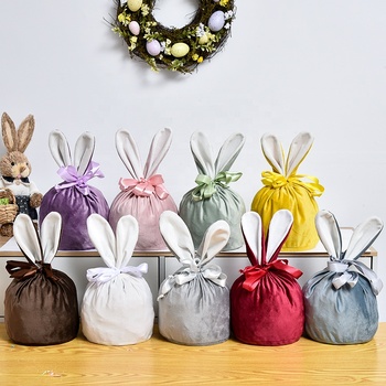 Yeni varış 9 renkler lüks tasarım uzun tavşan kulaklar Bunny kadife hediye paskalya İpli şeker çanta
