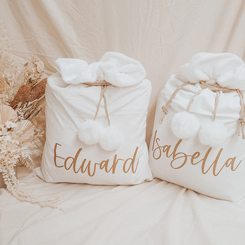 Monogram beyaz noel hediyesi İpli çanta lüks Pom Pom özel boş kadife Santa çuval